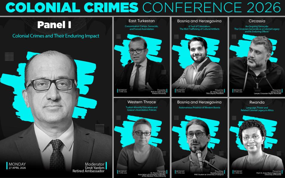 10:30 - 12:00 | Panel IColonial Crimes and Their Enduring ImpactModerator:Ümit Yardım Retired AmbassadorSpeakers:Prof. Dr. Sami Al-Arian Filistinİstanbul Sabahattin Zaim Üniversitesi.......................................................................... Prof. Dr. Erkin Emet East TurkestanAnkara University, Faculty of Language, History and GeographyConcentration Camps, Genocide, and Forced AssimilationSıddık Hasan Turabi Sudan........................................................................... Dr. Pervin Hayrullah Western ThraceWestern Thrace Minority Higher Education Graduates AssociationEducation and Assimilation: Greece’s Policies Toward the Turkish Minority in Western Thrace Dr. Yahya Coşkun Bosnia and HerzegovinaTİKA Deputy PresidentA Tool of Colonialism: The Illicit Trafficking of Cultural ArtifactsMustafa Dedoviç Bosnia and HerzegovinaPHD Student at University of SarajevoAutonomous Province of Western BosniaSelçuk Ulutaş CircassiaLawyer, Circassian Rights AdvocateAn Ongoing Genocide: The Circassian Genocide as a Colonial Legacy and Its Enduring EffectsProf. Dr. Anne Marie Kagwesage RwandaUniversity of RwandaLanguage, Power and Related Colonial Legacy in Africa |